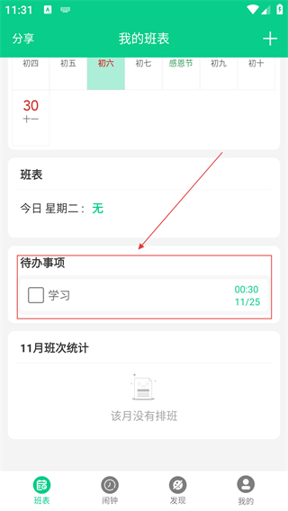 4、保存后,待辦事項會顯示在班表頁面的“待辦事項”區(qū)域,完成待辦的添加。
