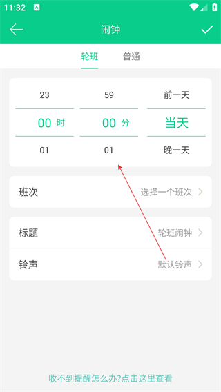 3、在設置界面選擇“輪班”模式,設置時間、班次、標題等信息,完成后保存。