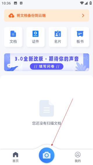 1、在首頁可,點擊【底部相機按鈕】進入拍攝界面。