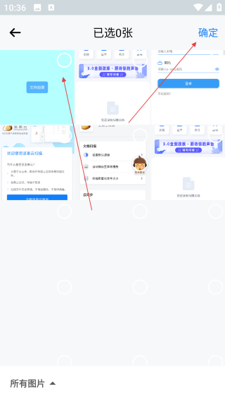 3、在選圖頁,【選好圖片】后,點擊右上角【確定】按鈕進入文檔編輯頁面。