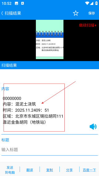 4、掃描完成后,即可查看【掃描結果】中的內容,完成掃描文字操作。
