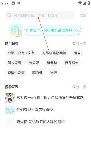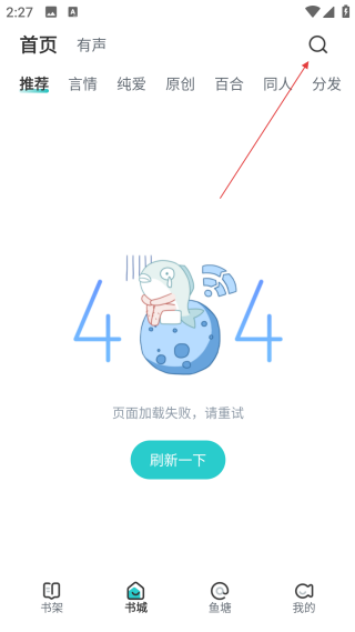 1、在書城頁,點擊【右上角搜索圖標】,進入搜索功能的操作界面。