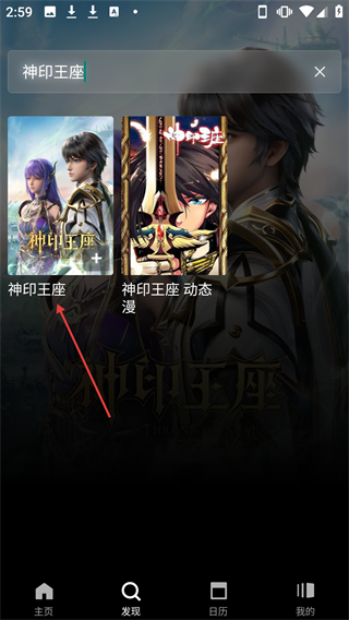 2、在發現頁面的搜索框輸入【神印王座】,可觸發搜索操作。