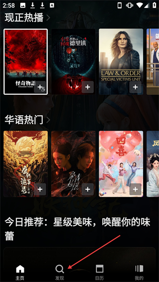 1、在首頁點擊底部的【發現】選項,可進入發現頁面。