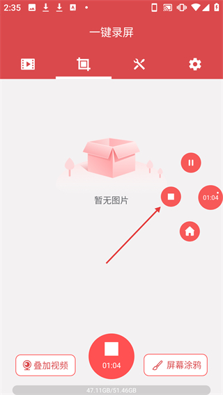 3、錄屏過程中,點擊對應按鈕可進行操作,點擊顯示【01:04】旁邊的按鈕可結束當前錄制。