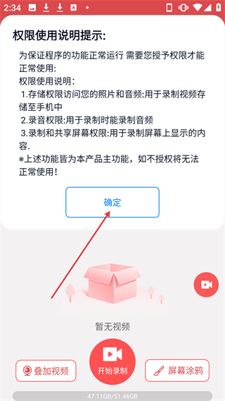 2、彈出【權限使用說明提示】彈窗后,點擊【確定】按鈕,即可繼續后續的權限授予流程。
