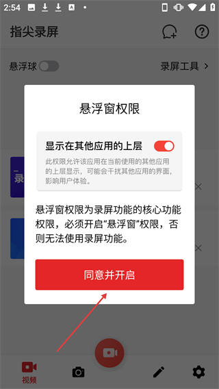 3、彈出【懸浮窗權(quán)限】提示彈窗后,點擊【同意并開啟】按鈕,進入權(quán)限設(shè)置頁面。