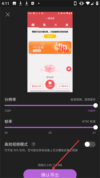 4、在導出設置頁面調整分辨率、幀率等參數后,點擊【確認導出】按鈕,完成視頻的導出操作。