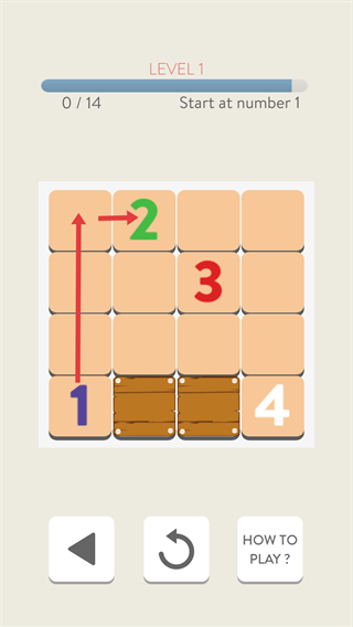 2、按照“Start at number 1”的提示,從數字1開始,沿路徑依次連接后續數字(如1→2→3→4),逐步填充格子以推進進度。