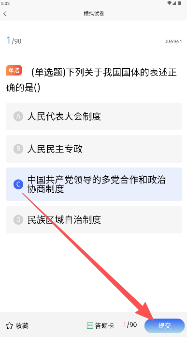 3、進入答題界面完成題目后點擊“提交”按鈕完成練習。