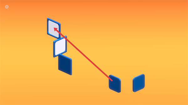2、跟隨【紅色箭頭】的指引,將對應藍色方塊移動至上方的空白方塊處,完成該位置的方塊填充,推進拼接進度。