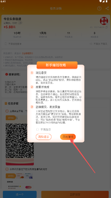2、點擊任務(wù)卡片進入詳情頁閱讀任務(wù)要求選擇“開始賺錢”。