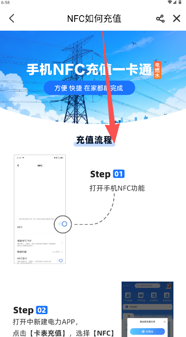 2、上下滑動即可查看“NFC如何充值”流程。