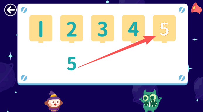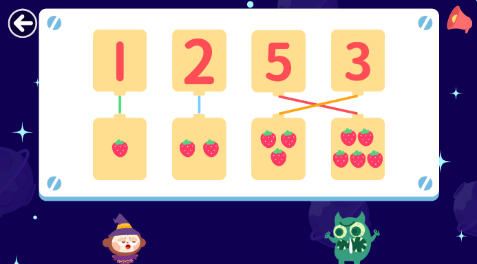 2、通過數字與實物配對練習,根據題目要求點擊正確數字完成數量匹配。