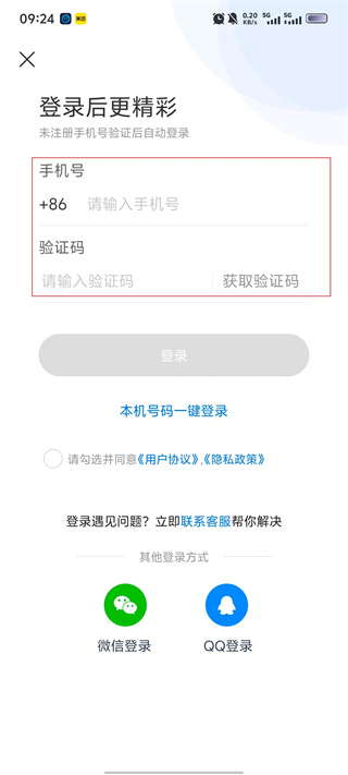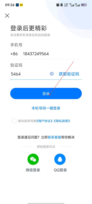 4、填寫【手機號】與獲取的【驗證碼】后,勾選協議即可點擊【登錄】按鈕,完成賬號登錄操作。