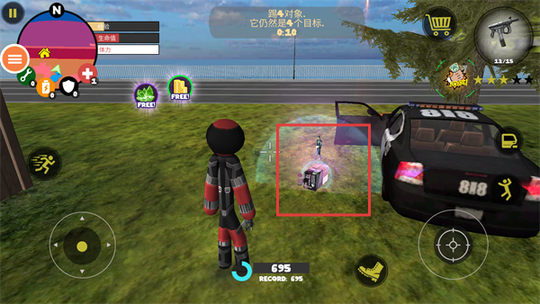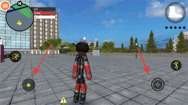 1、進入游戲后,通過左側移動鍵操控【火柴人】移動,跟隨【地圖】標識的目標點推進。