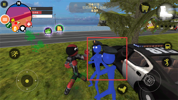 2、在任務場景中,攻擊【藍色火柴人】目標,注意界面顯示的【剩余目標數】推進進度。