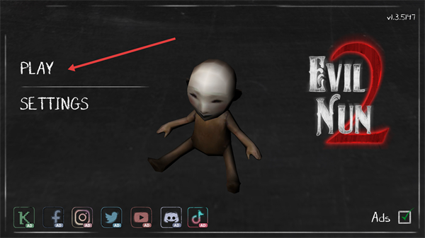 1、點擊“PLAY”進入游戲,這是恐怖解謎續作,核心玩法是在場景中探索可交互物品(如柜子、抽屜),收集道具以躲避修女、完成逃脫。