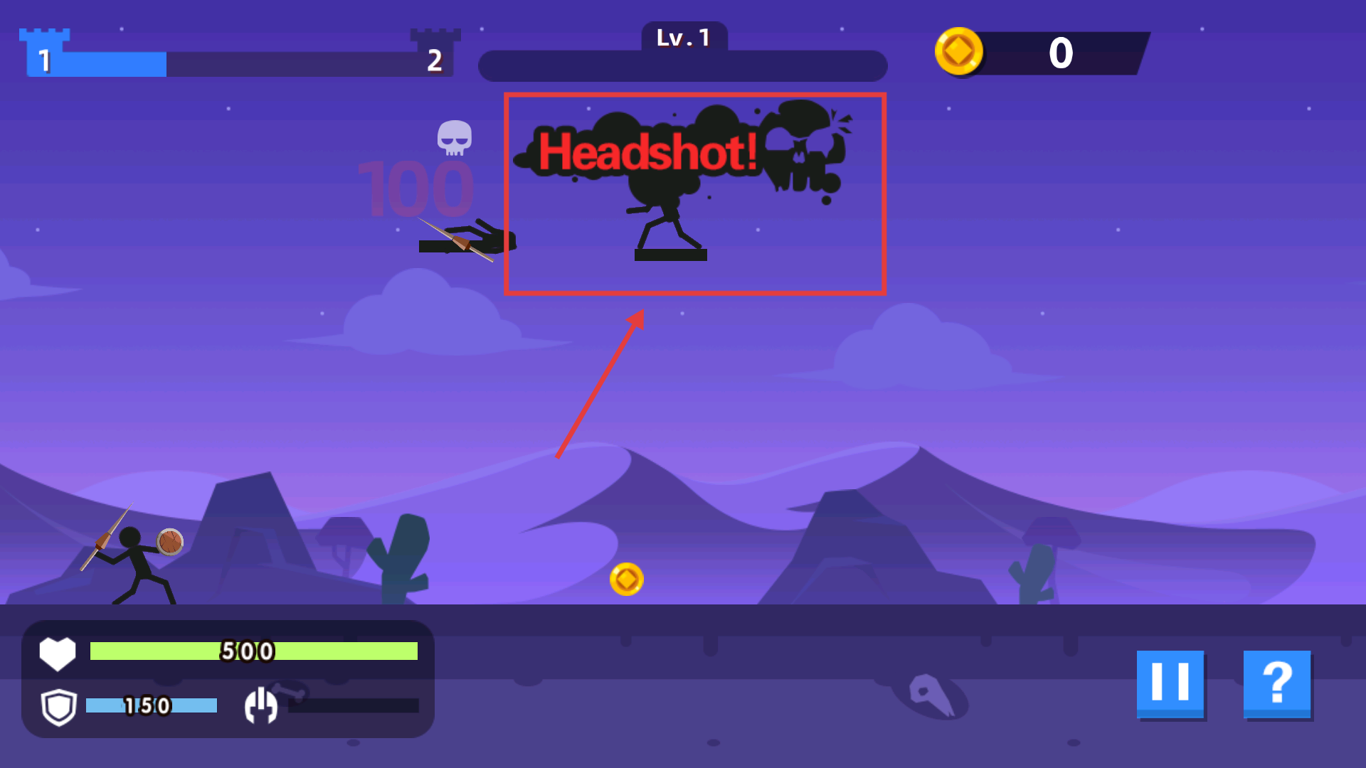 4、攻擊敵人時瞄準頭部位置,觸發【Headshot】效果可獲得更高分數獎勵,提升關卡結算時的金幣獲取量。