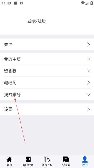 2、在個人中心,點擊【我的賬號】選項,展開賬號相關的功能操作選項。