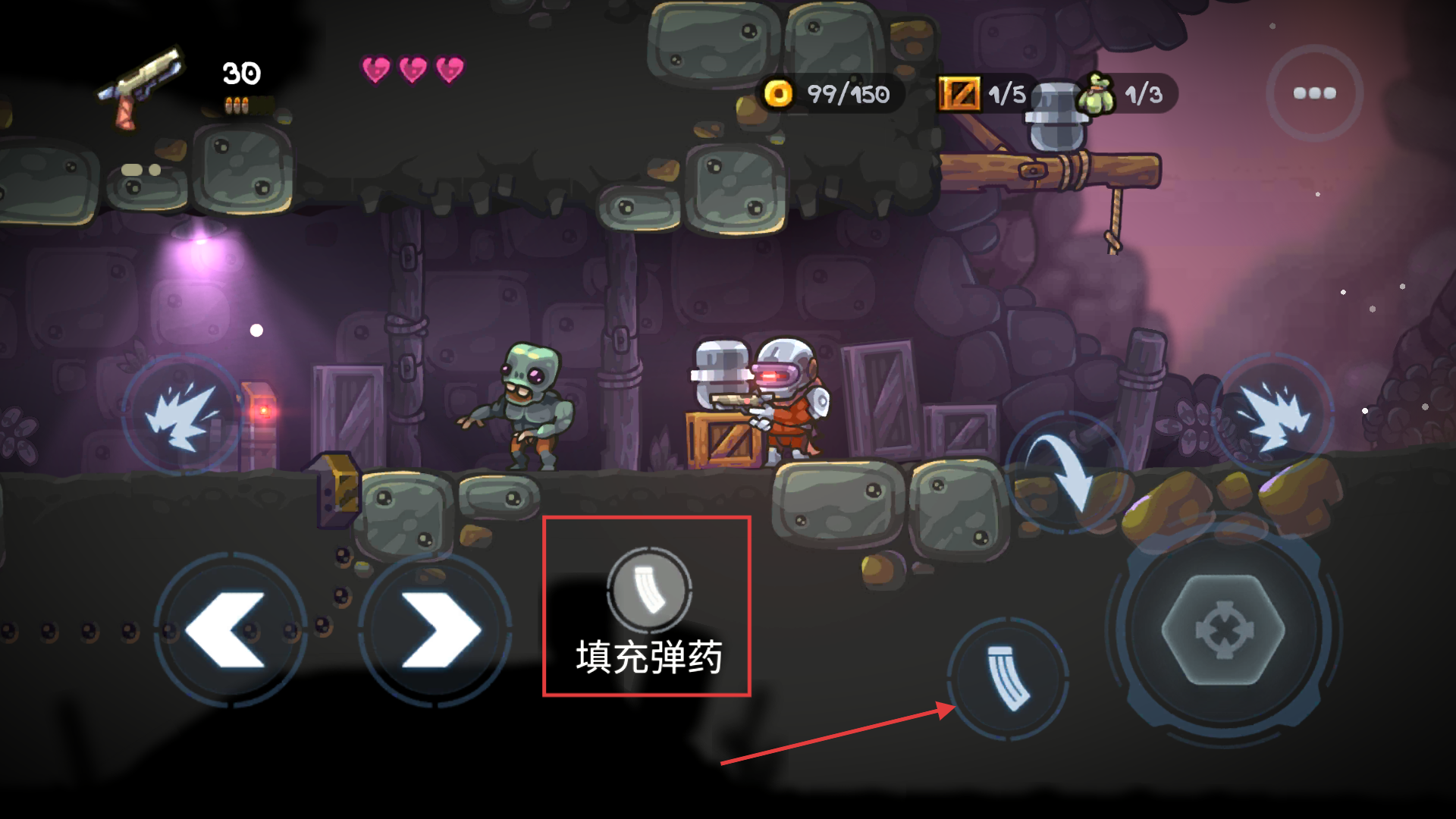 2、遇到僵尸前,記得點擊填充彈藥按鈕補充子彈,確保戰斗時擁有足夠火力應對敵人。
