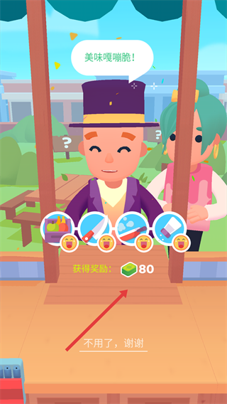 5、隨游戲進程逐步解鎖多樣美食品類,按顧客訂單需求精準制作,完成交付后即可獲得對應獎勵,推進冒險。