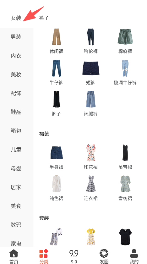 1、分類細分貼合購物習慣,主分類下的商品類型劃分精準,如女裝下的褲子含休閑褲牛仔褲等,無需多次篩選即可定位細分品類。