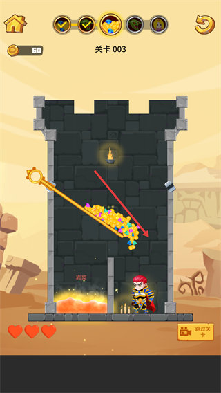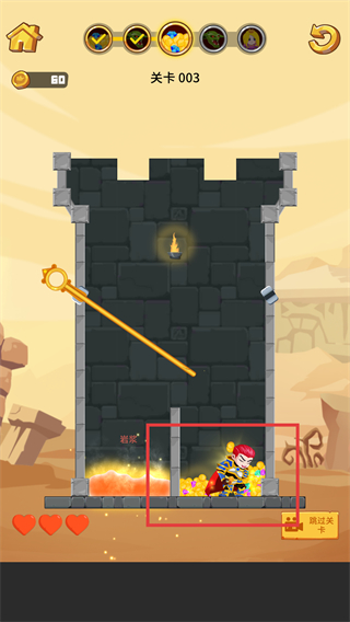 英雄救援(測試版)是一款在短視頻平臺爆火的卡通風格解謎手游,以地牢冒險為背景,融合益智策略與趣味操作,憑借輕松休閑的畫面與燒腦的關卡設計圈粉無數。玩家將深入一座座神秘地牢,通過精準把控抽桿順序與策略,拉動銷釘構建安全路徑,既要收集沿途金幣,又要利用控制桿隔離駭人的怪物,在解謎闖關的過程中感受腦力與操作的雙重樂趣。
