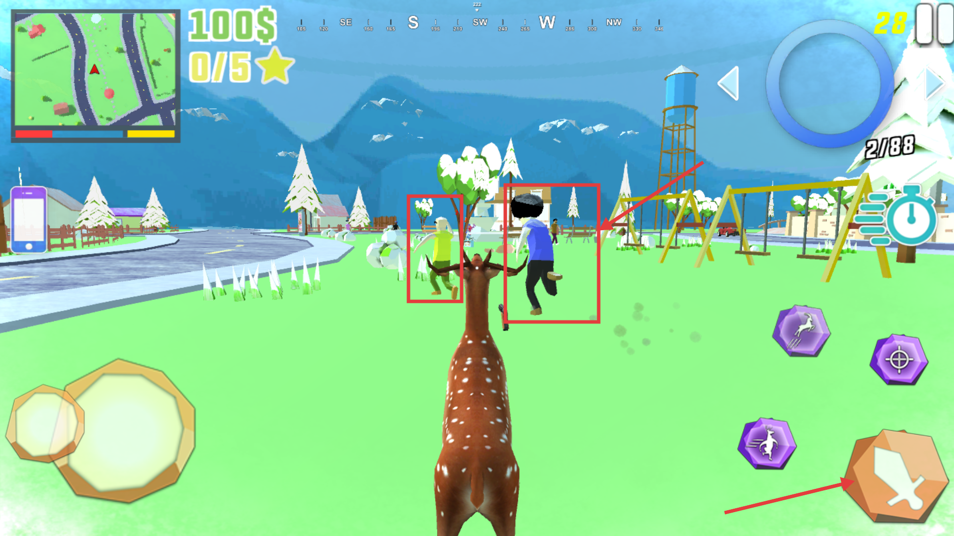 3、解鎖鹿的各類能力利用這些能力破壞小鎮設施,同時注意躲避人類發起的反攻行動。