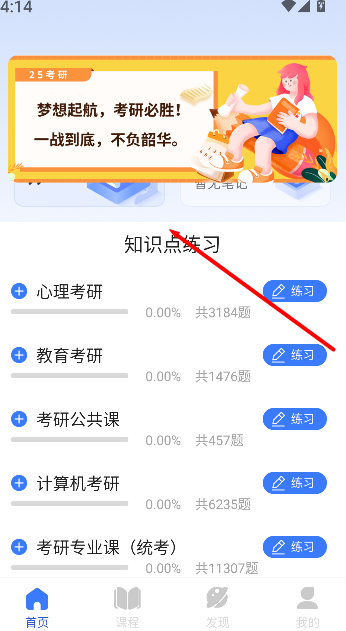 1、支持按科目進(jìn)入題庫,涵蓋數(shù)學(xué)、英語、政治等方向,可按學(xué)習(xí)需求選擇對應(yīng)內(nèi)容練習(xí),操作直觀。