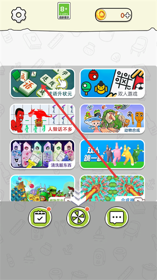 1、在游戲選擇界面,點(diǎn)擊【連線-成語(yǔ)升狀元】選項(xiàng),進(jìn)入該游戲的功能選擇界面,準(zhǔn)備開啟成語(yǔ)連線類關(guān)卡挑戰(zhàn)。