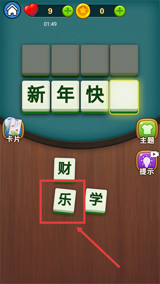 3、在成語(yǔ)關(guān)卡中,選擇【樂】字,將其填入對(duì)應(yīng)空缺位置,完成“新年快-樂”的成語(yǔ)組合,推進(jìn)關(guān)卡進(jìn)度。