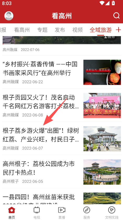 3、設全域旅游專屬板塊,集中呈現本地文旅相關內容,便于集中了解高州旅游資源與活動。