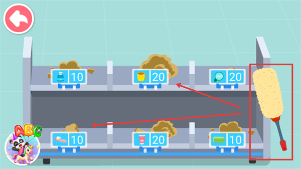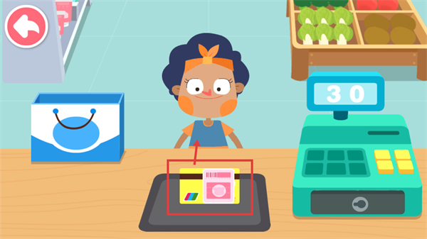 2、設計商品整理歸位任務,寶寶需根據標簽將放錯區域的商品放回正確位置,學會分類整理并了解更多貨物。