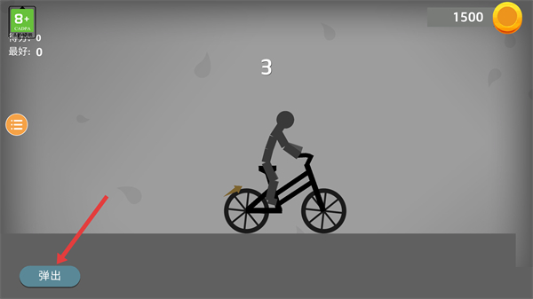 2、進入游戲后,點擊【彈出】按鈕,操控火柴人開始騎行自行車,推進關卡。