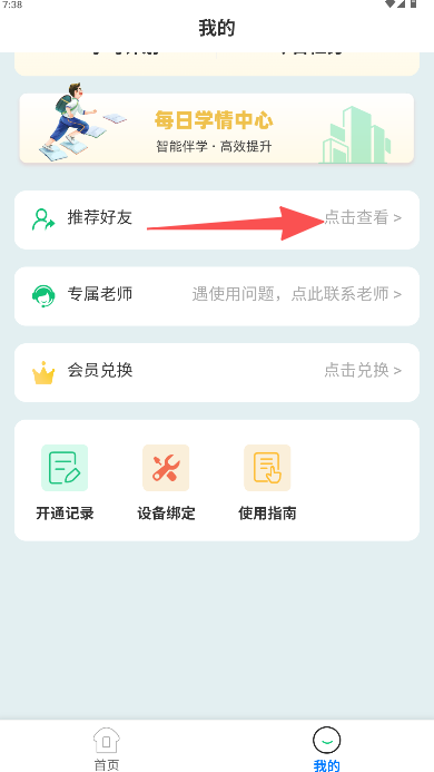 3、集成教師溝通與好友推薦,支持與專屬教師在線交流并通過邀請好友獲得學(xué)習(xí)權(quán)益。