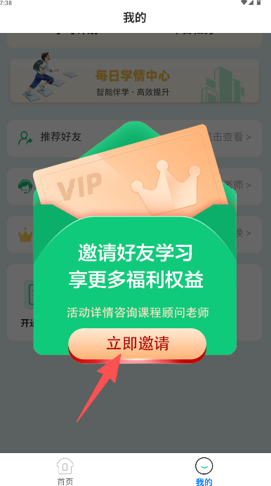 3、點擊“立即邀請”好友共同學(xué)習(xí)享受會員權(quán)益。
