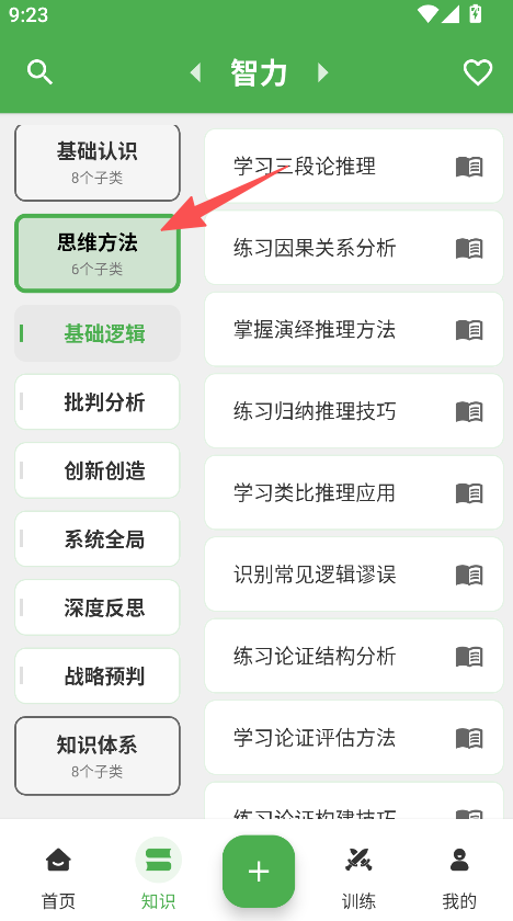 2、選擇目標分類如思維方法,查看該分類下的學習內容列表。