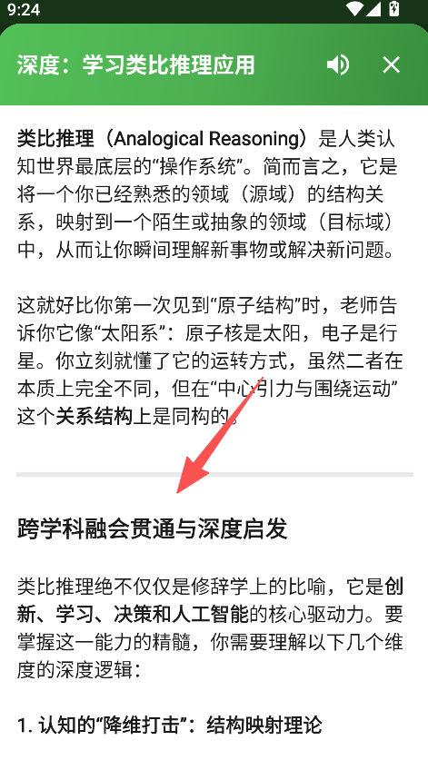 3、點擊列表中的具體內容如學習類比推理應用,進入詳情頁閱讀學習。