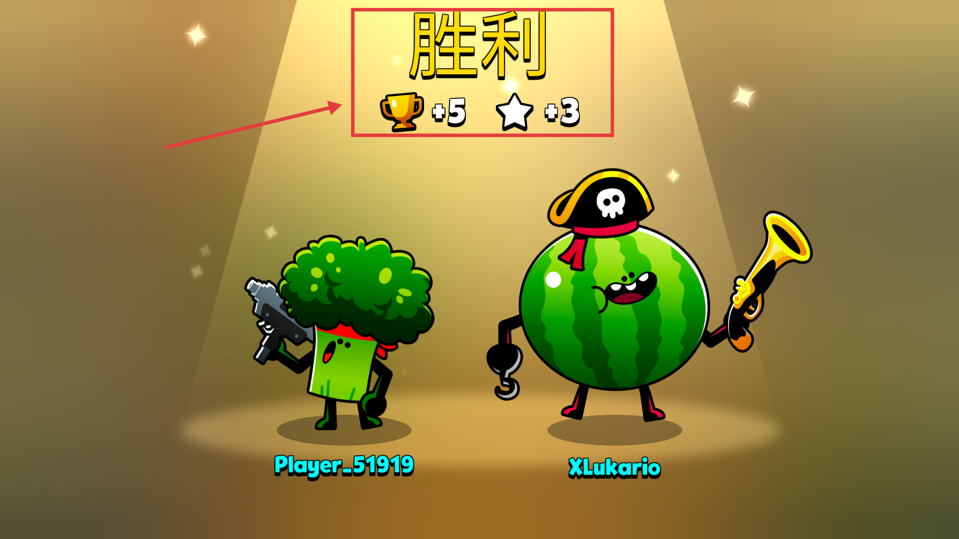 3、戰斗勝利后可獲得【獎杯+5】與【星星+3】的獎勵,這些獎勵能用于后續角色升級或解鎖新游戲內容。