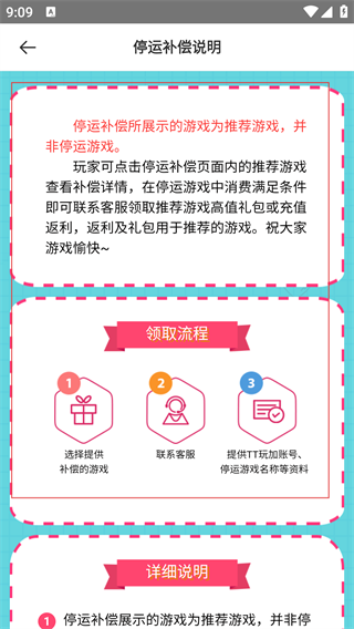 4、按說(shuō)明流程,選擇提供補(bǔ)償?shù)耐扑]游戲,聯(lián)系客服并提供賬號(hào)、停運(yùn)游戲名稱等資料,完成補(bǔ)償領(lǐng)取。