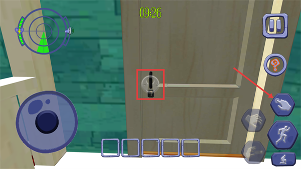 4、對準【門鎖】區(qū)域,使用右側(cè)【交互按鈕】嘗試解鎖,完成后即可打開房門進入建筑。