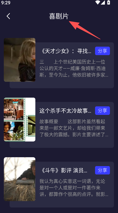 2、在喜劇片列表選擇目標影片,點擊進入該影片的詳情頁面。