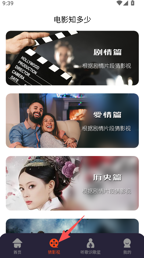 3、返回首頁點擊猜影視板塊,選擇對應篇章參與影視猜測互動。
