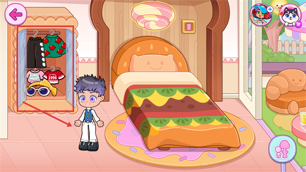 3、打開衣柜,可以挑選服飾類道具,為角色進行裝扮配置,完成該裝扮任務以推進當前的關卡流程。