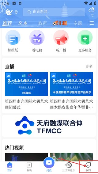 1、在包含【讀報紙】-【看電視】等功能的頁面,點擊底部導航欄的【我的】選項,進入對應的個人功能操作界面。