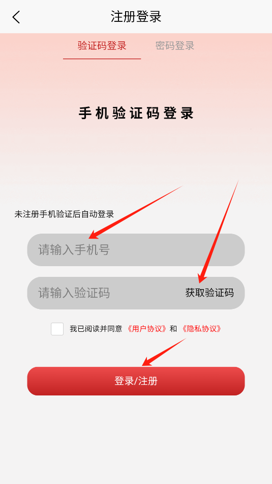 3、輸入手機號,獲取驗證碼輸入,點擊登錄即可。