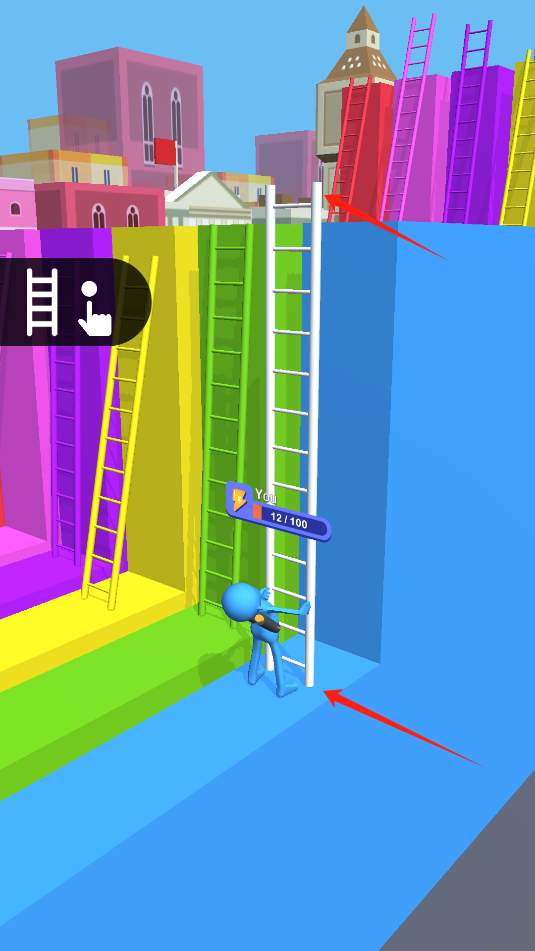 3、按住屏幕梯子會生長,松開手指,角色向上攀爬,以此類推。
