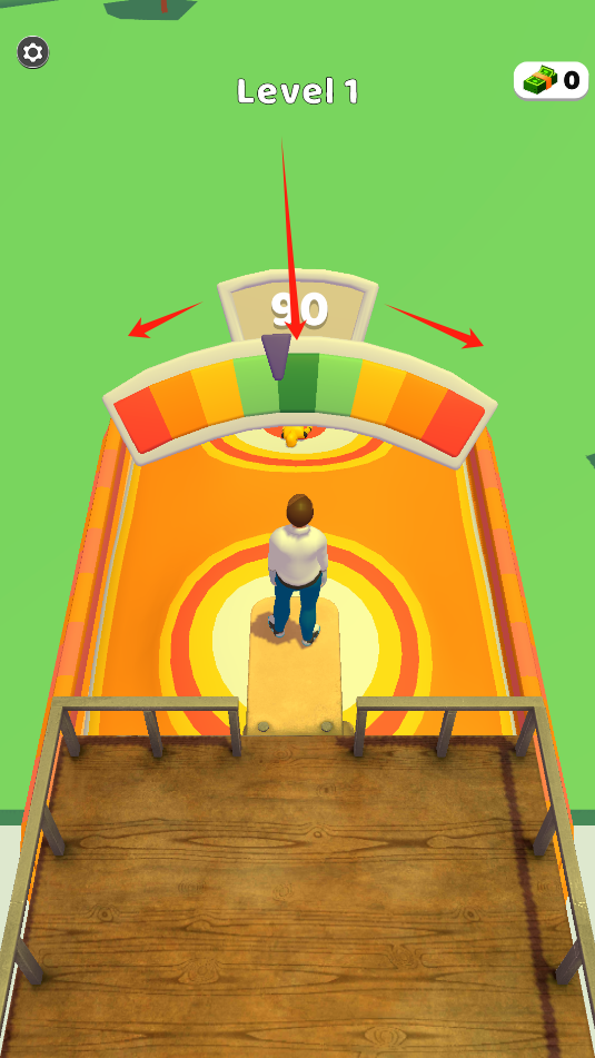 1、游戲中,點擊畫面開始,指針開始晃動,等待指針到達中間位置時,按下屏幕得出數值。