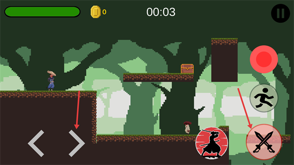 2、游戲中用方向鍵控制移動(dòng),點(diǎn)擊【攻擊】按鈕,可快速移動(dòng)并對(duì)敵人發(fā)起攻擊。